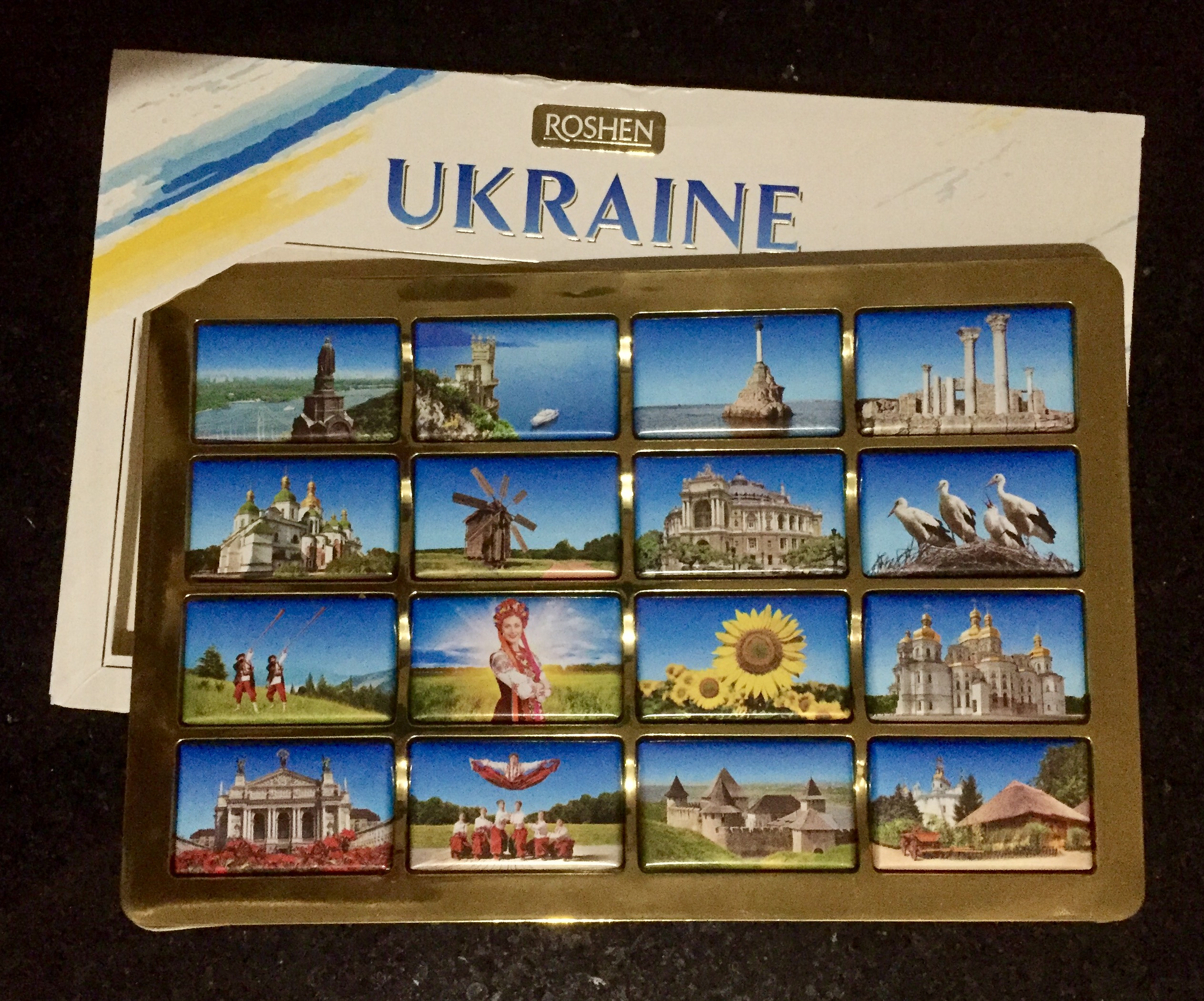 About the box of sweets: In January my friend from Kiev gave us this box of chocolates. They were gone within a week. Obviously, chocolates don’t last in our household.
